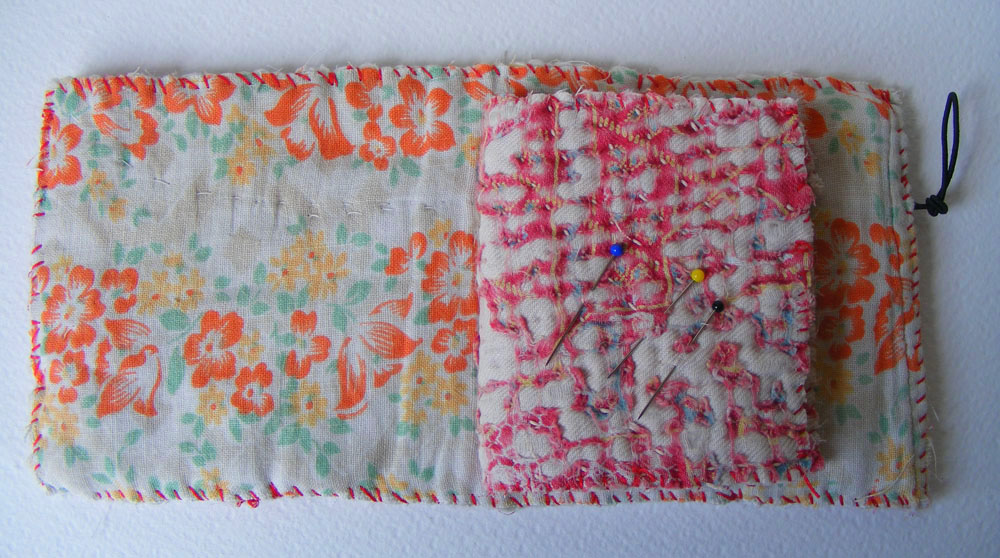 Playing again with old and very worn patchwork quilt pieces...embellishing a cross body bag